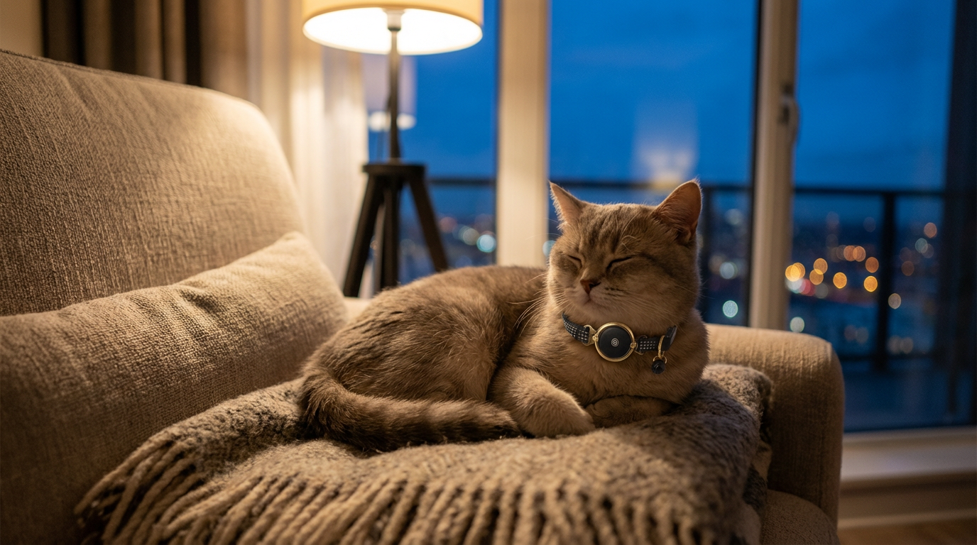 Un collier sécurisant et élégant, pensé pour son bien-être, qui veille sur votre chat en permanence.